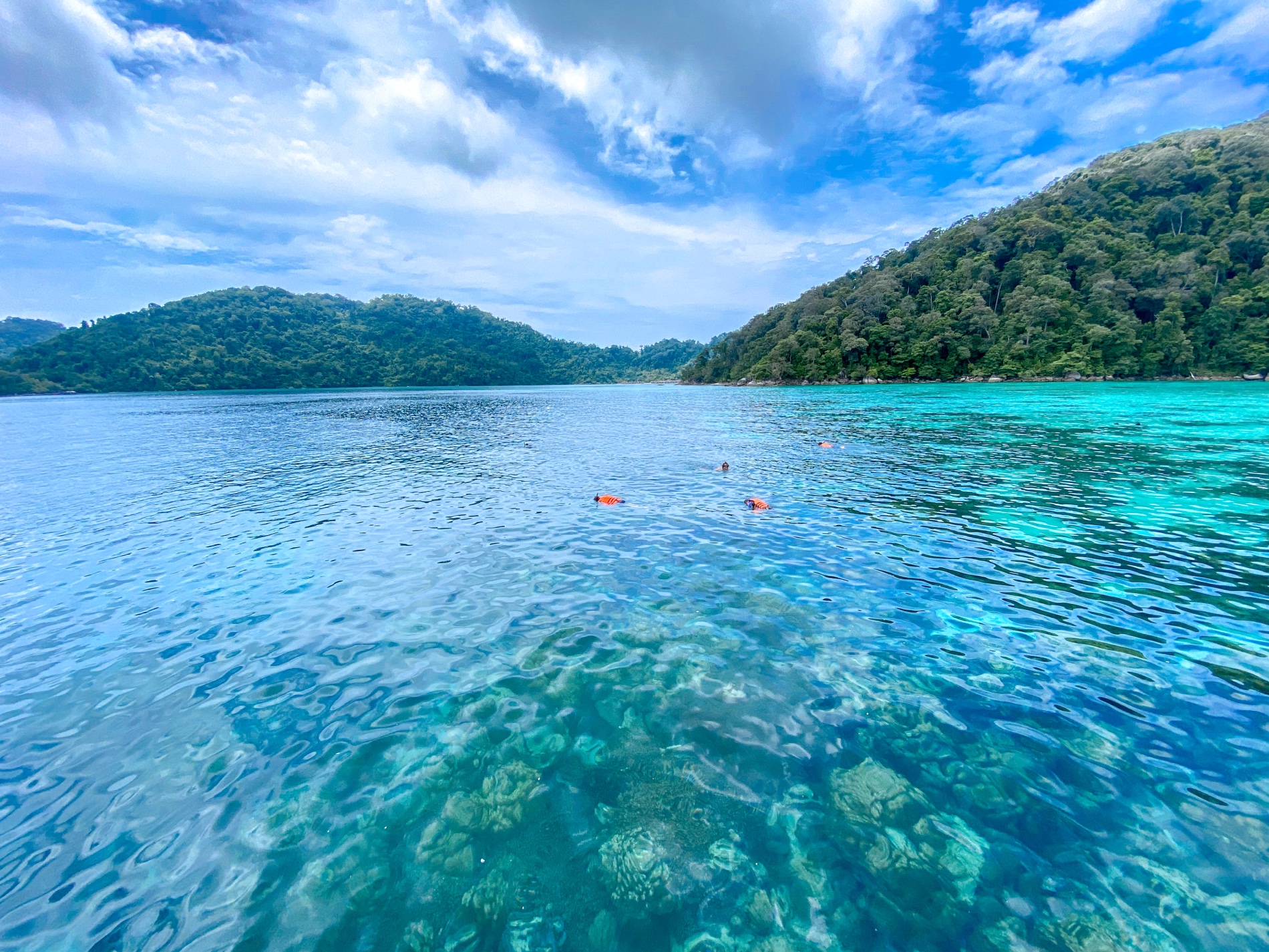 หมู่เกาะสุรินทร์ จะเป็นเกาะที่วางตัวอยู่ในกลุ่มอ่าวขนาดใหญ่ ดังนั้นจึงสามารถที่จะเป็น ที่บังคลื่นลมได้ดี ทั้งสองฤดู คือ ฤดูร้อน และฤดูฝน จึงเป็นแหล่งกำเนิดแนวปะการังน้ำตื้น ที่มีความอุดมสมบูรณ์ และมีขนาดใหญ่ที่สุดของประเทศไทย นอกจากนี้ยังมีหมู่บ้านของชาวเลเลกลุ่มสุดท้ายที่ยังดำรงวัฒนธรรมดั้งเดิมมากที่สุด คือ “มอแกน” หรือ “ยิบซีแห่งท้องทะเล” ประมาณ 200 คนปัจจุบันได้ตั้งหมู่บ้านอยู่ที่เกาะสุรินทร์ใต้ ขายของที่ระลึกให้นักท่องเที่ยว และบางส่วนทำงานเป็นลูกจ้างของอุทยานฯ